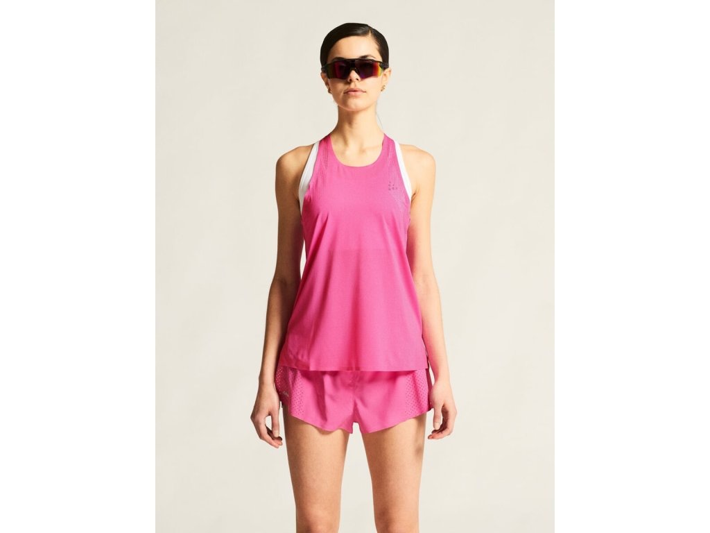 Elitní běžecký nátělník CRAFT Race Day 2 svými vlastnostmi přispívá k překonávání limitů nejen elitním atletkám, ale i ostatním běžkyním, které hledají mimořádný produkt bez kompromisů. Je vyroben z vysoce funkčního materiálu s mimořádně efektivním odvodem vlhkosti. Vysokou prodyšnost podporují perforované panely pro maximální ventilaci i při velmi intenzivním výkonu v horkých dnech. Lepené kraje trika eliminují možnost odření, takže se může běžkyně plně soustředit na výkon.