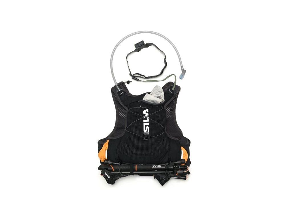 Pro nejdelší běhy a náročné závody bude Silva Strive 10 spolehlivou volbou. Stejně jako menší verze, i Strive 10 vychází z úspěšné vesty Strive Light 10, oproti které je o 32% lehčí a střihově propracovanější. Do kapes na ramenních popruzích lze umístit 2x500ml měkkou láhev- není součástí. Na zip uzavíratelné jsou u této verze kapsy tři, háček na klíče, píšťalka a reflexní prvky zde také nechybí. V zádové části jsou kapsy dvě, spodní podélná je přístupná z obou stran, hlavní zádová kapsa má dva vývody na kabel čelovky nebo hadici od hydratačního vaku a ve srovnání se Strive 5 je hlavní kapsa větší a je uzavíratelná na zip. Hole lze připevnit pomocí pružných regulovatelných poutek, nebo lze hole umístit do vaku Silva Quiver, který umožňuje jednodušší odkládání / odnímání z vesty při běhu – vak lze dokoupit.